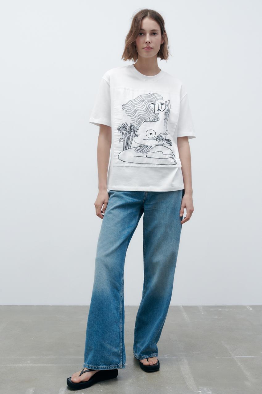 T Shirt Mit Stickerei Dina Razin Gebrochen Weiss Zara Deutschland Germany